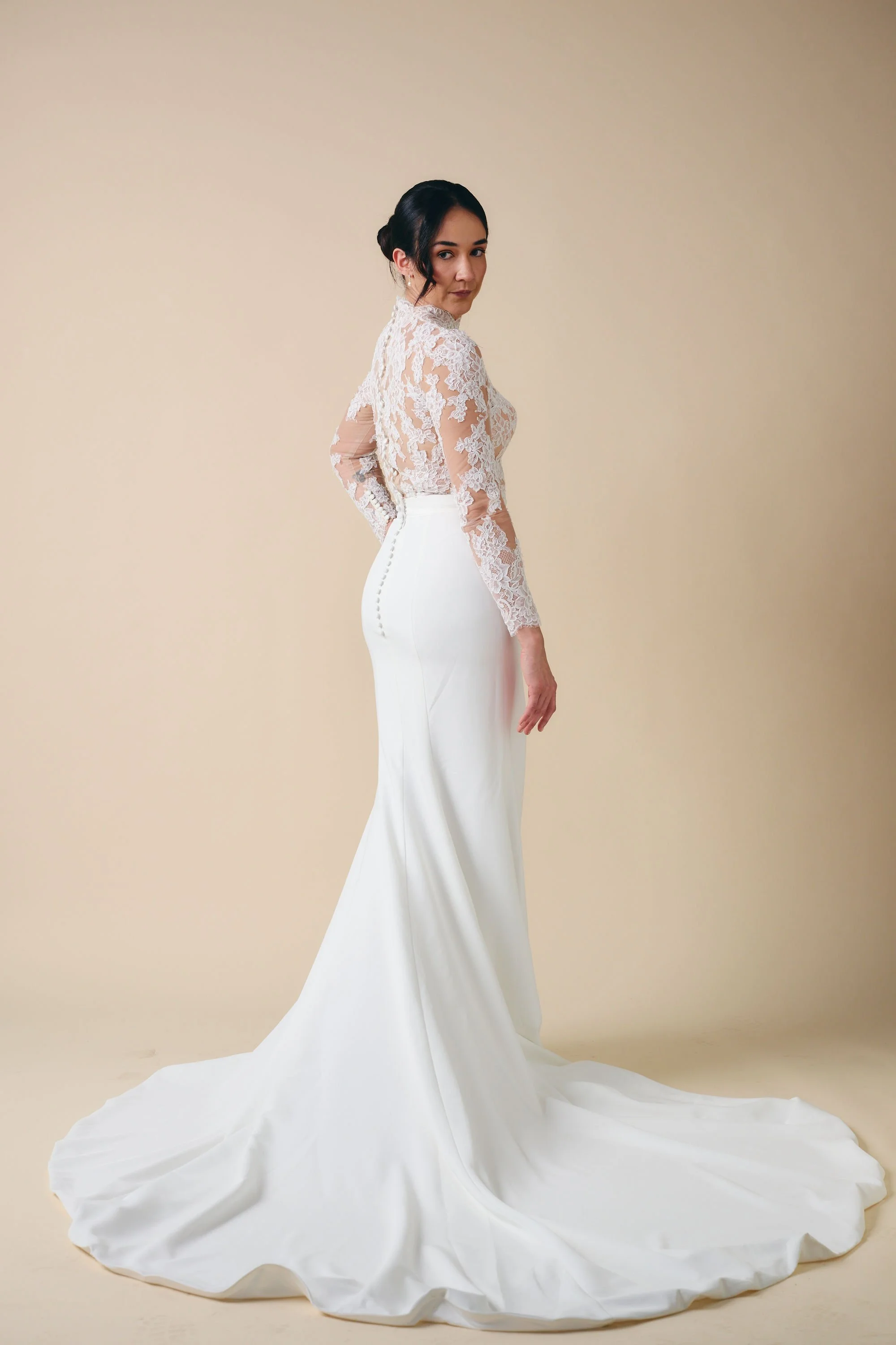 Zara Celeste is designed to shape and flatter, with a structured corset bodice that defines the silhouette.The skirt falls softly as you move, finished with a delicate draped neckline for a modern, effortless feel.Confident, refined, and easy to wear. BOOK YOUR CONSULTATION